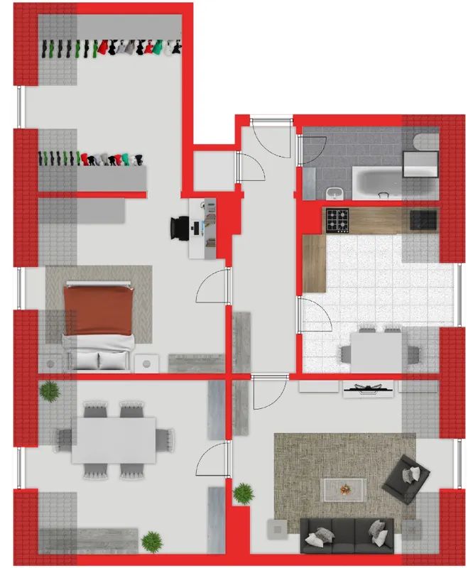 Unsere 3-Zimmer-Wohnung befindet sich im 3. Obergeschoss eines 12-Familienhauses mit Gewerbeeinheiten im Erd- sowie im 1. Obergeschoss.