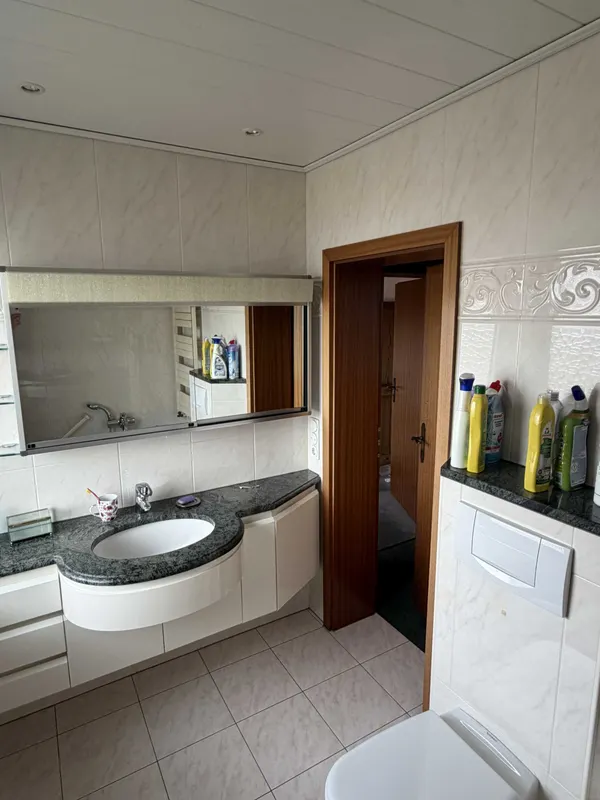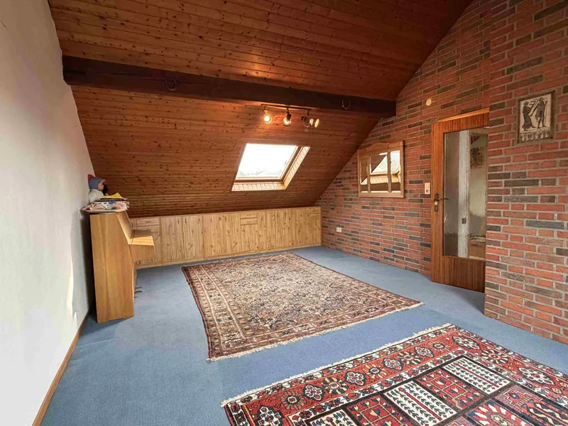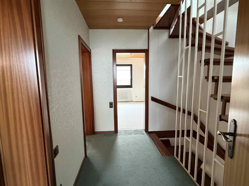 Offiziell 117 m² großes, zum linken Nachbarn versetzt angeordnetes Reihenhaus aus 1972, nachträglich wurde das Dachgeschoss mit einem großen Hobbyraum und einem kleinen Büro o.ä. in Eigenregie ausgebaut (ca. 28 [...]