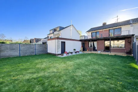 Diese Doppelhaushälfte aus dem Jahr 1970 bietet eine solide Grundsubstanz, eine großzügige Raumaufteilung und vielfältige Nutzungsmöglichkeiten. Empfangen werden Sie Ihre Gäste künftig in einem großzügigen Entrée. Kochliebhabern steht eine ca. 14 m² große Küche zur Verfügung, die über einen Zugang auf die überdachte Terrasse verfügt. Highlight dieser Immobilie ist sicherlich das ca. 42 m² große Wohn- / Esszimmer, welches sich über die gesamte Haustiefe erstreckt und ebenfalls über einen Terrassen- und Gartenzugang verfügt.