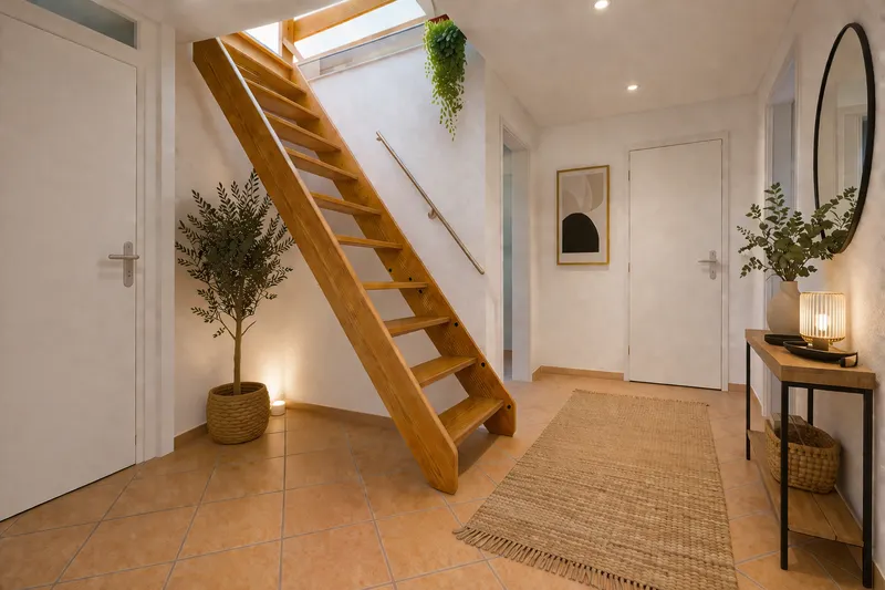 Über das Treppenhaus erreichen Sie die Wohnung im Dachgeschoss und gelangen in die zentrale [...]